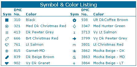 You have our permission to make one photocopy of this chart for your personal use only. This design is not to be re-charted, kitted, sold, modified or redistributed on paper or any other format, including scanning and posting on the internet,  without the express written permission from The Vermillion Stitchery.